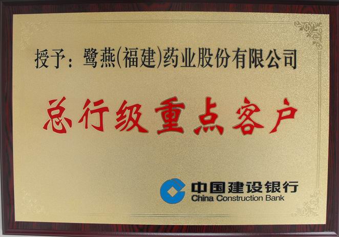 基于鷺燕企業(yè)優(yōu)異的業(yè)績表現(xiàn)、穩(wěn)健的經(jīng)營管理風(fēng)格和良好的資信情況,經(jīng)過中國建設(shè)銀行的嚴(yán)格審評,近日,鷺燕(福建)藥業(yè)股份有限公司被認(rèn)定為中國建設(shè)銀行“總行級重點客戶”。