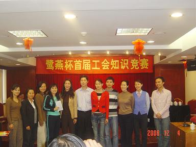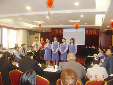 廈門鷺燕大藥房有限公司于2006年12月3日在廈門廬山大酒樓隆重舉行鷺燕杯首屆工會(huì)知識(shí)競(jìng)賽,此次工會(huì)知識(shí)競(jìng)賽由6個(gè)工會(huì)小組各自選派4名選手參加,比賽環(huán)節(jié)包括團(tuán)隊(duì)介紹、啦啦隊(duì)互動(dòng)、演講比賽、必答題、搶答題、猜詞秀、才藝表演等,形式多樣、內(nèi)容豐富。比賽現(xiàn)場(chǎng)還邀請(qǐng)了一些供應(yīng)商的代表作為嘉賓評(píng)委,為比賽進(jìn)行現(xiàn)場(chǎng)點(diǎn)評(píng)及頒獎(jiǎng)。