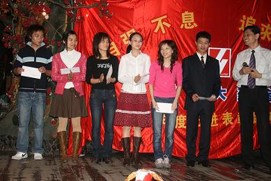 下午4:00整,在《好日子》歡快的歌舞中,表彰聯(lián)歡會正式拉開了序幕。會上共頒發(fā)了九個獎項,分別是最佳員工獎6人,最佳藥師獎2人,最佳新人獎、最佳參與獎、最佳貢獻(xiàn)獎各1人,最佳店長獎3人,最佳門店獎2個,還有兩個特殊的獎項:一是半年度毛利考核指標(biāo)完成相對值、絕對值各前3名的門店,二是2000年8月前入職的老員工獎。頒獎過程中還穿插了員工們自編、自導(dǎo)、自演的小節(jié)目。他們用優(yōu)美的舞姿、甜美的歌聲、俏皮搞笑的小品為杰出的先進(jìn)代表們喝彩、祝福,現(xiàn)場氣氛非?;钴S,高潮迭起,一張張如花的笑靨遨游在一片歡樂的海洋……最后,在《感恩的心》的優(yōu)美的旋律和熱烈的掌聲中,活動暫告一個段落。